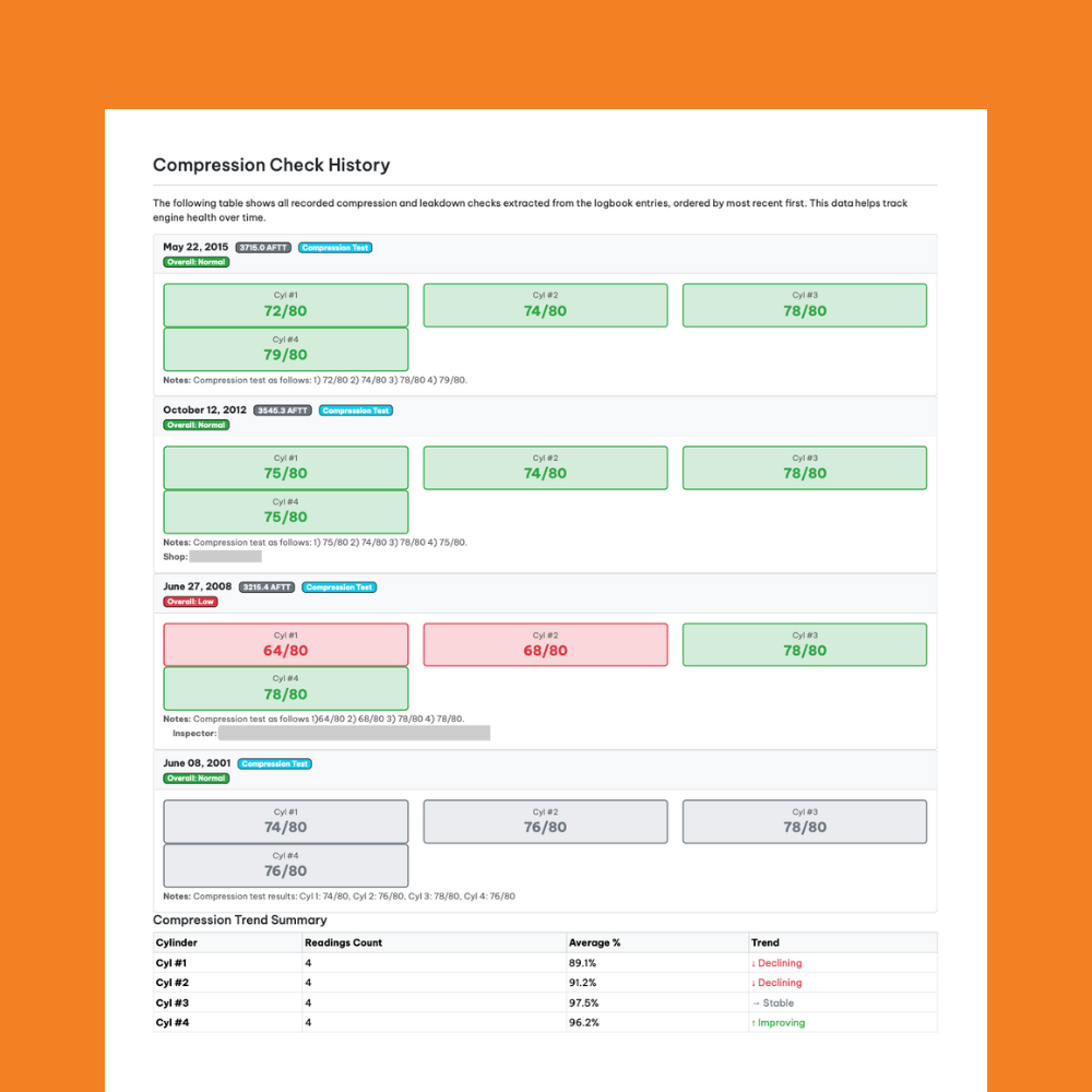 Windsock PLUS is where it gets really fun. In addition to all the core insights you get with our standard report, running a PLUS report allows our technology to quickly analyze aircraft maintenance logbooks (handwritten & types) to give you valuable insights into your aircraft's maintenance history.